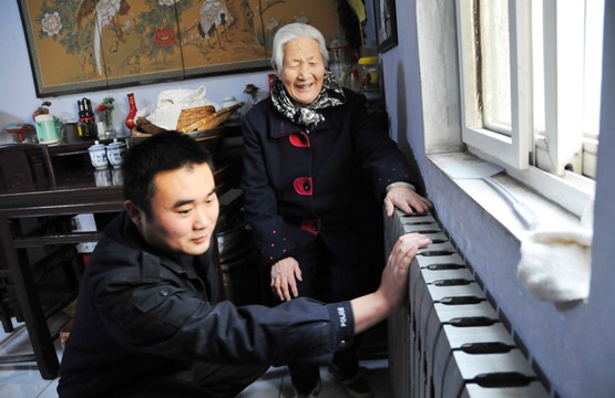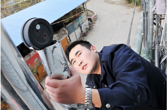 來到11號(hào)樓,胡站長(zhǎng)并沒有直接進(jìn)入用戶家,他首先爬上二樓單元屋檐上,檢查了一下進(jìn)、出單元的壓力表,一切正常后,才來到4樓王大娘家。