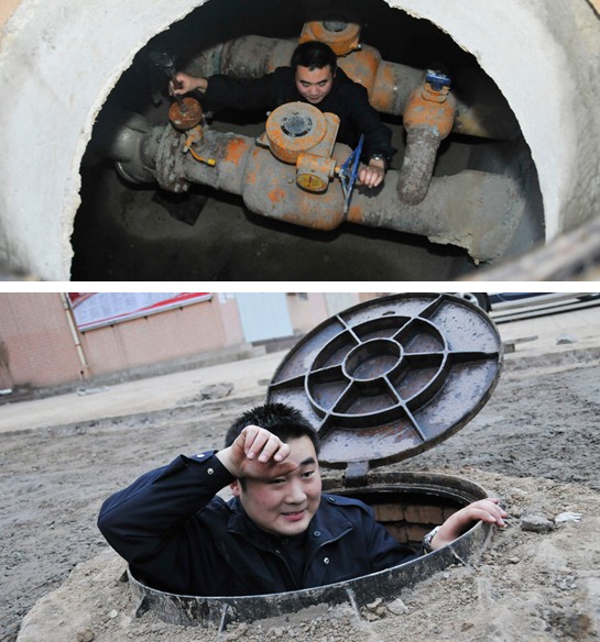 簡(jiǎn)單的午餐過后,胡站長(zhǎng)開始了閥門井的巡視工作。當(dāng)掀開位于濟(jì)陽大街的主管道井蓋時(shí),一股熱浪襲來。“井內(nèi)溫度達(dá)到46度,到這里面就如同洗桑拿浴”胡站長(zhǎng)開玩笑說。等他從6米多深的管道井中上來時(shí),一頭的汗水。大的管道井雖然熱,但是內(nèi)部空間比較大,維修保養(yǎng)還比較容易,眾多小區(qū)開發(fā)商自行建設(shè)的小管道井才是工作中的挑戰(zhàn),空間狹小,工作人員只能用特殊地體位更換閥門。