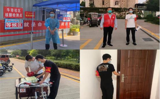 黨員陳騰在許莊街道東方御園社區(qū)錦繡花園協(xié)助開展上門核酸檢測(cè)、防疫消殺、夜間巡邏等工作