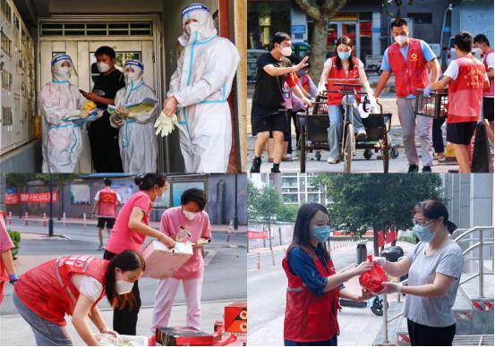 職工劉曉龍?jiān)诮鸪墙值琅J猩鐓^(qū)做防疫志愿者,維持社區(qū)秩序、分發(fā)物資,幫助協(xié)調(diào)解決居民生活需求