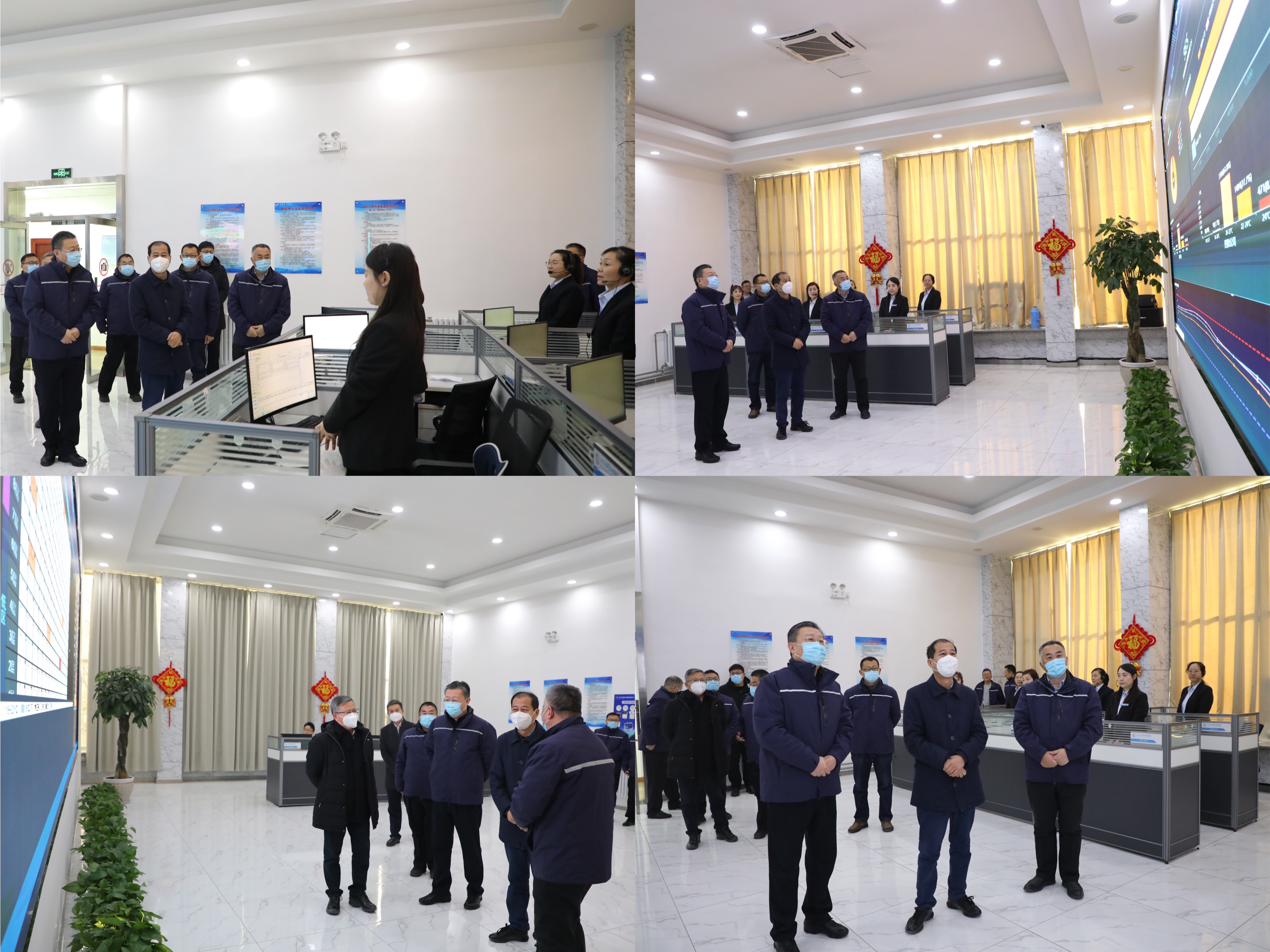 李魯一行前往公司監(jiān)控調(diào)度中心通過數(shù)智化供熱管控平臺實時查看了供熱管網(wǎng)、換熱站等運行參數(shù),詳細了解供回水以及用戶家中室內(nèi)溫度,對安全生產(chǎn)、節(jié)假日期間值班值守、突發(fā)情況應(yīng)急搶修等工作進行了詢問,并向堅守崗位的一線供熱工作人員提前送上了新春的問候和美好的祝福。相關(guān)負責人詳細匯報了四和供熱公司積極應(yīng)對寒潮雨雪天氣的有效措施、訪民問暖工作開展情況以及春節(jié)期間供熱服務(wù)保障部署。李魯對四和供熱公司積極采取各項保暖保供措施,全面做好冬季供熱服務(wù)工作給予了充分肯定,并就開展下一步工作提出了明確要求,他強調(diào),供熱工作是冬季提升群眾溫暖感、幸福感最直接的體現(xiàn)。要站在講政治、保民生的高度,時刻把群眾的冷暖放在心上,把社會責任扛在肩上,切實增強責任感和使命感,把供熱保障工作擺在首要位置,做優(yōu)服務(wù)、做實保障、做強管理,抓緊抓實抓細供熱服務(wù)保障各項工作;要加強日常管理,認真細致做好熱源保障、設(shè)備運行、物資儲備等工作,夯實供熱服務(wù)基礎(chǔ);要以群眾的滿意度為標準,不斷提升供熱服務(wù)質(zhì)效,及時響應(yīng)群眾反映的供熱問題,妥善處理群眾訴求;要主動加強研判分析,細化完善應(yīng)急預(yù)案,進一步增強應(yīng)急處置能力,科學(xué)應(yīng)對極端天氣和突發(fā)情況,守牢安全底線,為群眾溫暖過冬、平安過節(jié)提供堅實保障。
