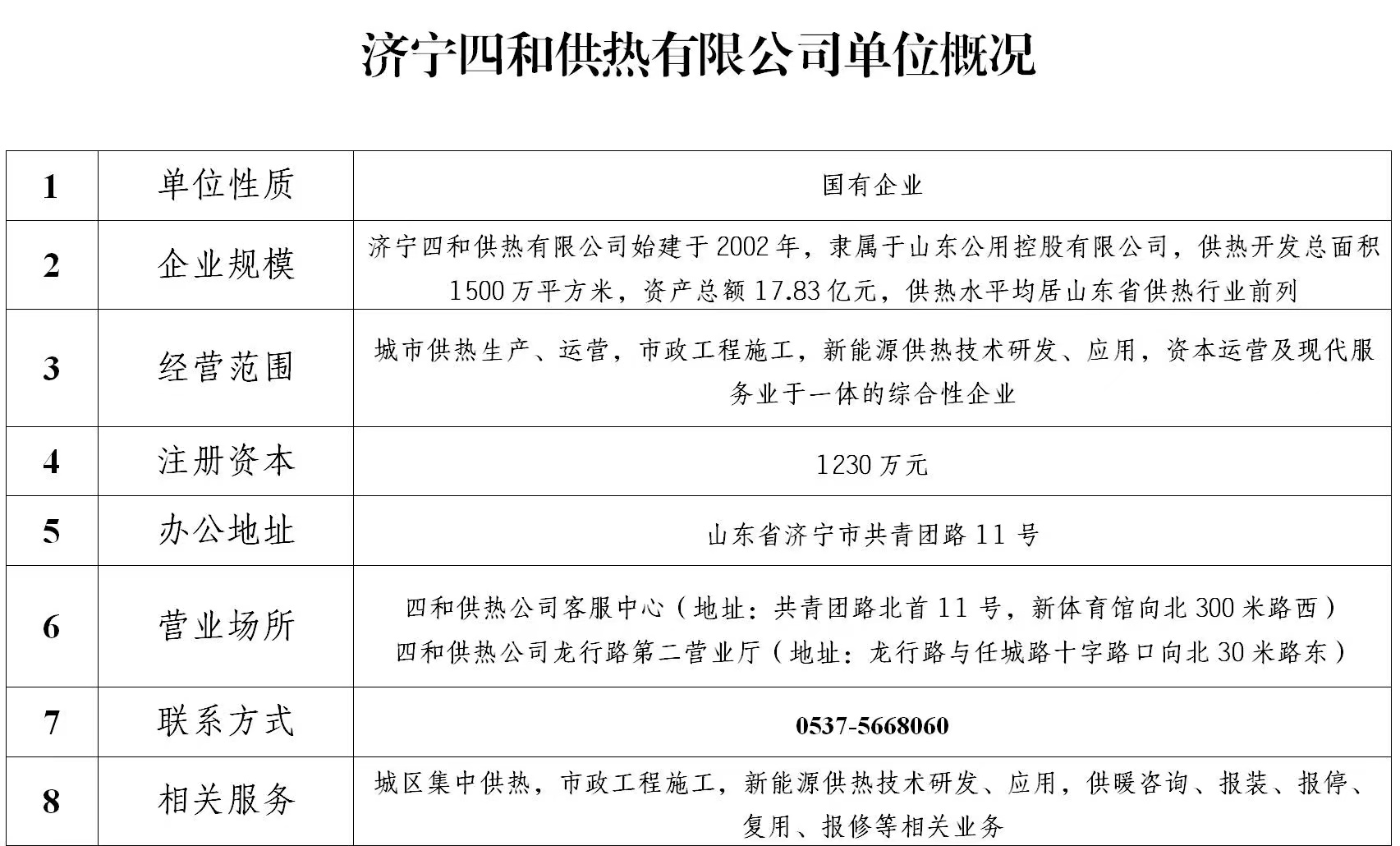 濟(jì)寧四和供熱有限公司始建于2002年,隸屬于山東公用控股有限公司,是集城市供熱生產(chǎn)、運(yùn)營,市政工程設(shè)計(jì)、施工,新能源供熱技術(shù)研發(fā)、應(yīng)用,資本運(yùn)營及現(xiàn)代服務(wù)業(yè)于一體的綜合性企業(yè)。目前,公司供熱轄區(qū)包括濟(jì)寧市任城區(qū)、濟(jì)寧市經(jīng)濟(jì)開發(fā)區(qū)、任城區(qū)經(jīng)濟(jì)開發(fā)區(qū)、太白湖區(qū),供熱開發(fā)總面積1500萬平方米,資產(chǎn)總額17.83億元,供熱水平均居山東省供熱行業(yè)前列。